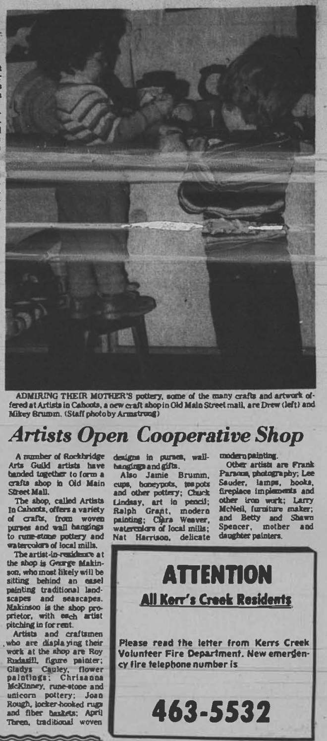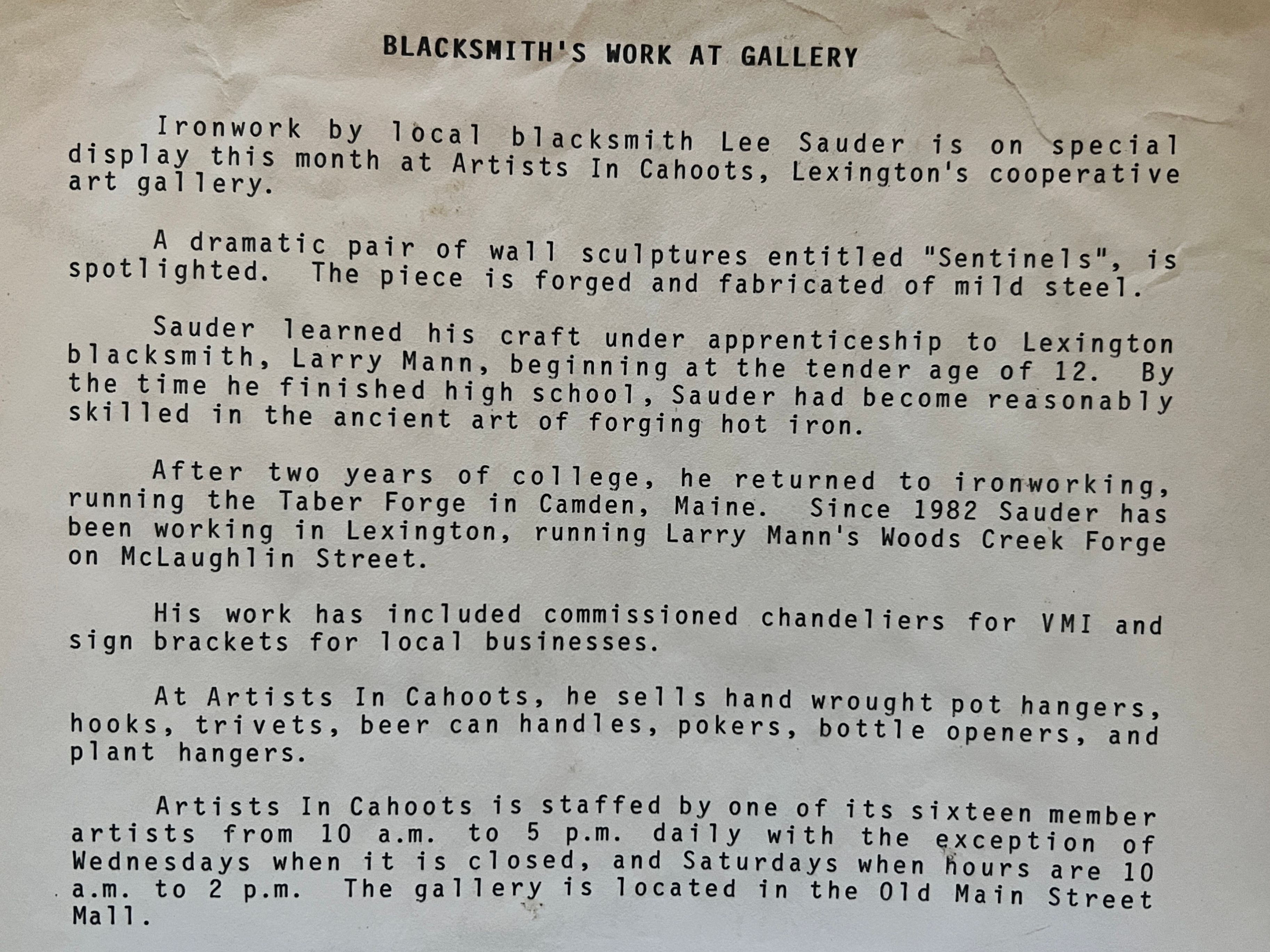 After the initial idea of forming an artists cooperative was met with applause, a name for the cooperative was needed. Lee Sauder, a current member and resident blacksmith, had returned to Rockbridge County from Maine and was a member of the fledgling cooperative.