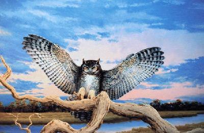 As a parallel to his aerospace work, Bill has pursued a lifelong artistic interest in wildlife. Working in a wide variety of media, from oils and pastels to colored pencils and inks, he has taken on wildlife commissions for clients throughout the United States and as far away as Australia. While concentrating on birds, particularly raptors such as great horned owls, ospreys, and red-tailed hawks, his works have included such diverse subjects as cougars, manta rays and Komodo dragons. He presently works out of his studio near Lexington, Virginia.
