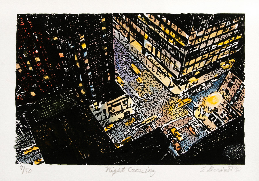 Ed’s work reflects where he has traveled and the emotions caused by what he sees – whether it’s a fire escape or a hot dog stand.