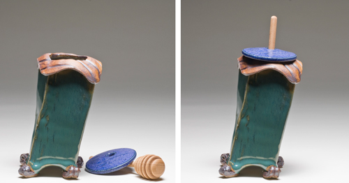 Jan mixes her own glazes, and is especially intrigued by the old Japanese and Chinese glazes. The ancient craft of creating and firing functional stoneware from clay to glazed piece continues to challenge with endless possibilities to explore.