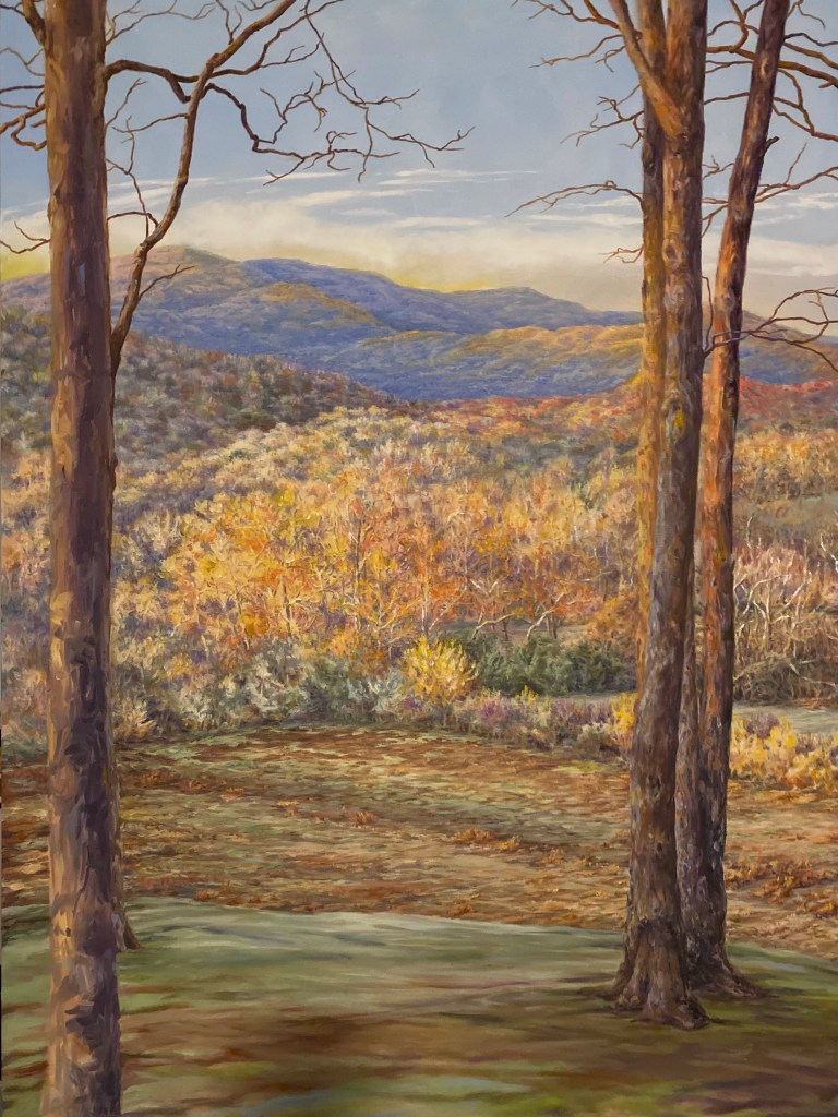 The rewarding and humbling aspects of painting comes in the re-experiencing of inspiring encounters with the natural environment. Many choices are made to interpret the features and forces of it onto a two-dimensional surface. I agree with Cezanne who said, “Painting from nature is not copying the object, but realizing one’s sensations.”