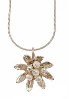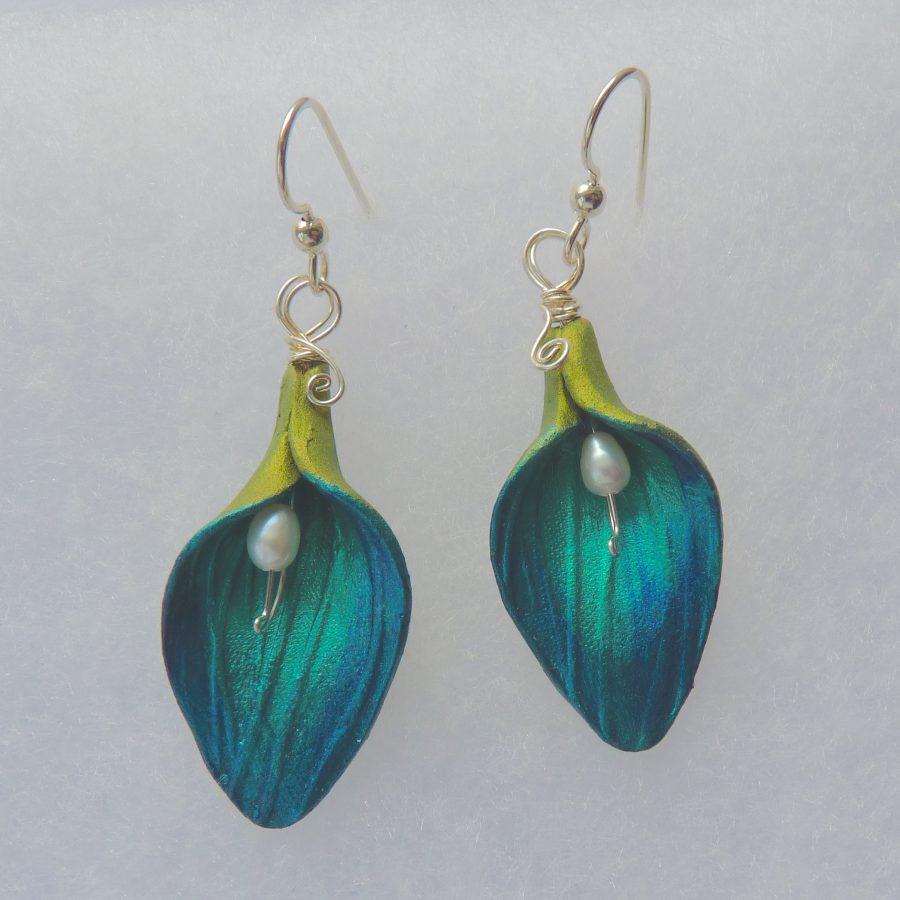 Wildflower jewelry is hand sculpted from clay, fired in a pottery kiln, and embellished with pearls and semi-precious stones. Each piece is signed by the artists and no two are exactly alike.